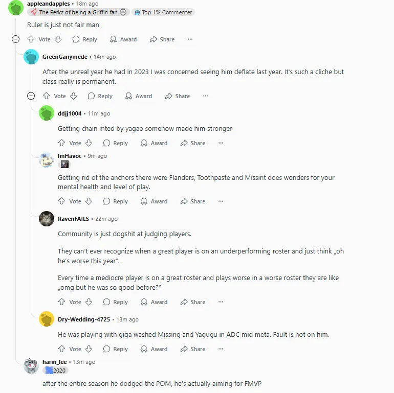 Ruler在前一年于JDG时看起来也很平庸。如果不是事后来看,人们可能会认为他会成为JDG表现不佳的下路选手之一