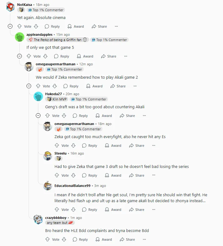 今日,Gen3:1击败HLE,夺得冠军并作为一号种子出征世界赛,在外网引起热议,部分评论翻译如下:(未经允许禁止转载、搬运截图)