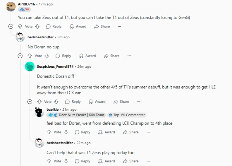为Doran感到难过,从卫冕LCK冠军到第四名。
