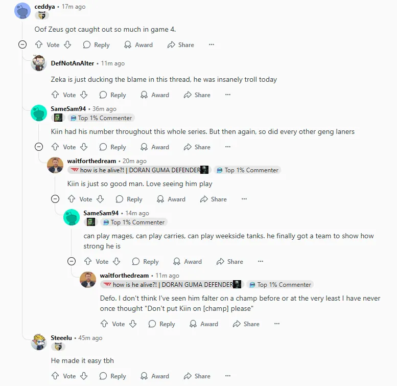 Kiin 在整个系列赛中都压制住了他。但话又说回来,GenG 的其他线上选手也是如此。